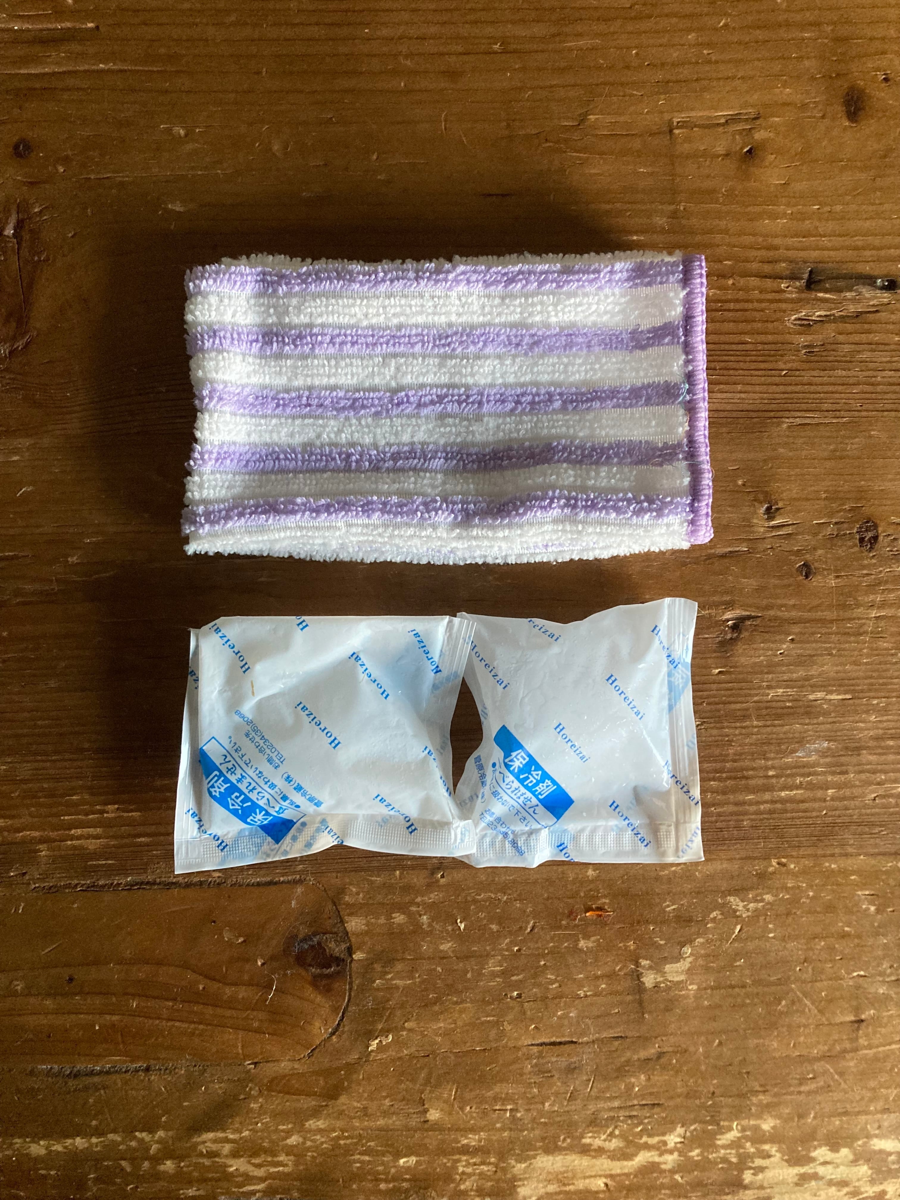 が、ハンカチで巻くだけだと冷たすぎる。でも厚めの生地で覆ってしまうと冷たくない。しかも、綿だとびしょびしょになって着ている服まで濡れるので、ちょうどいい保冷剤袋とハンカチをセットにして使っています。