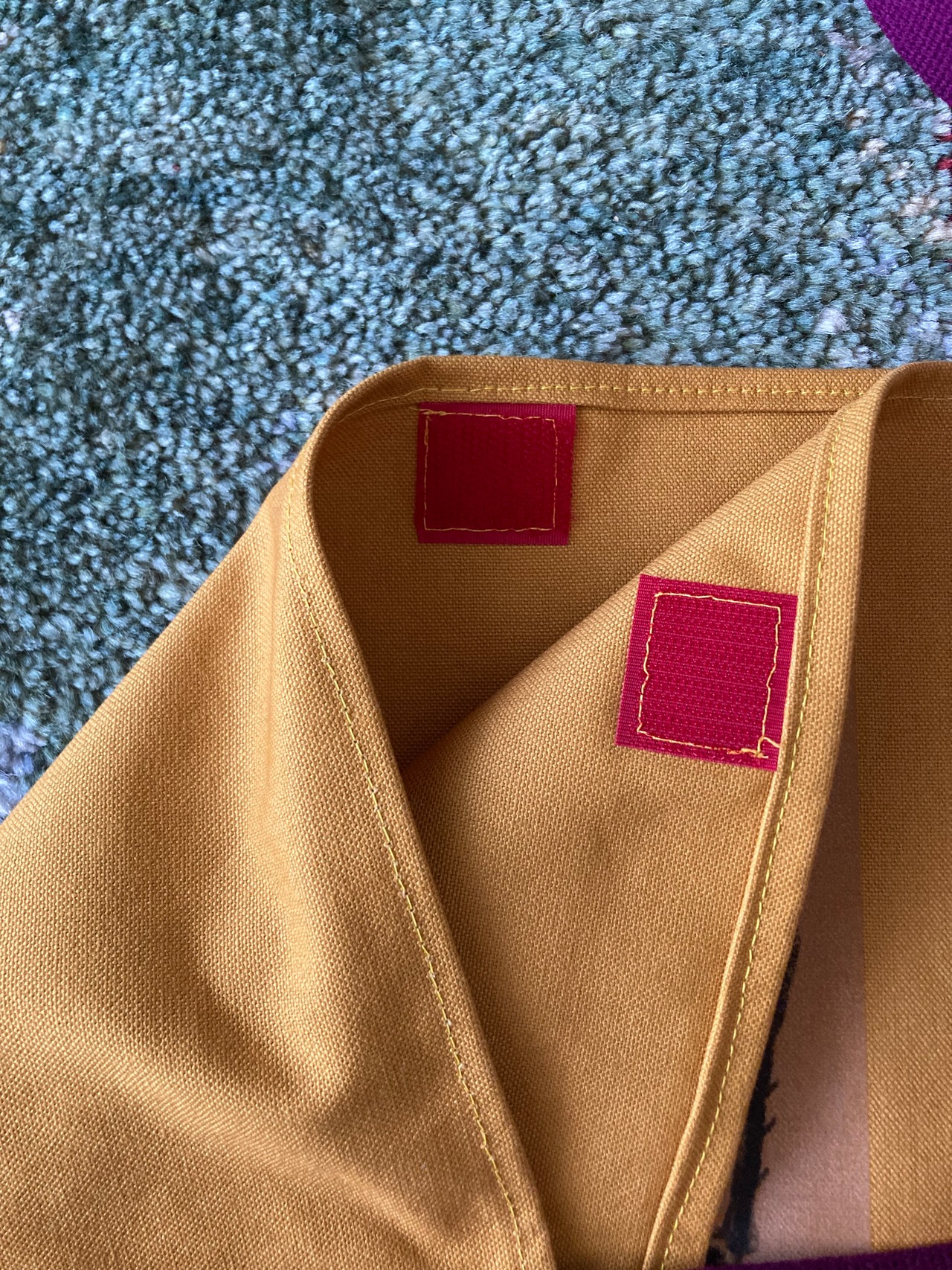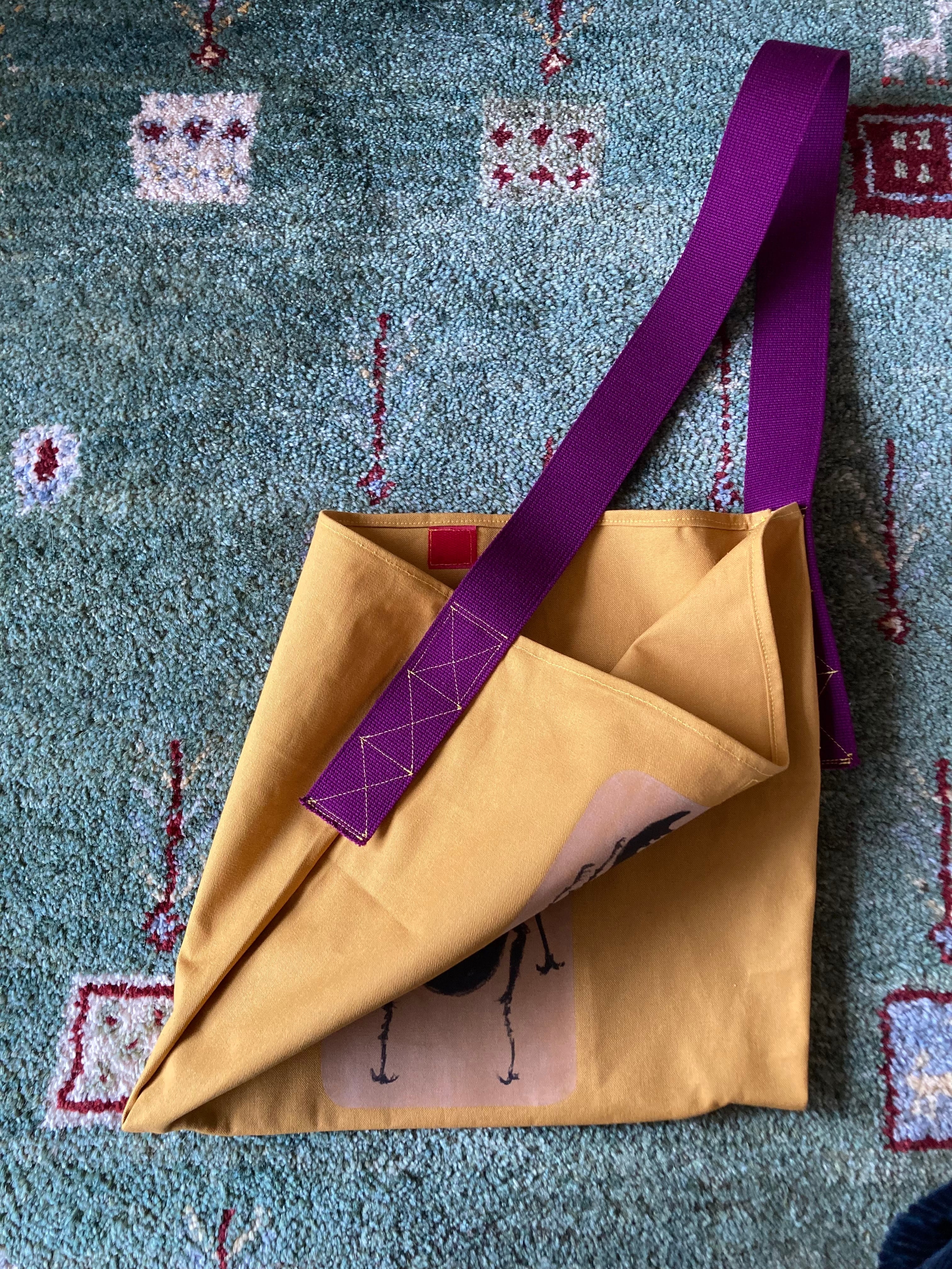ということで、自分で描いてプリントしました。デカ図鑑を2冊平気で持ち歩くという事で、布も肩掛け部分も丈夫な素材にしました。肩掛け部分は成長に合わせて縫い直せるようにして、長く使える仕様です。