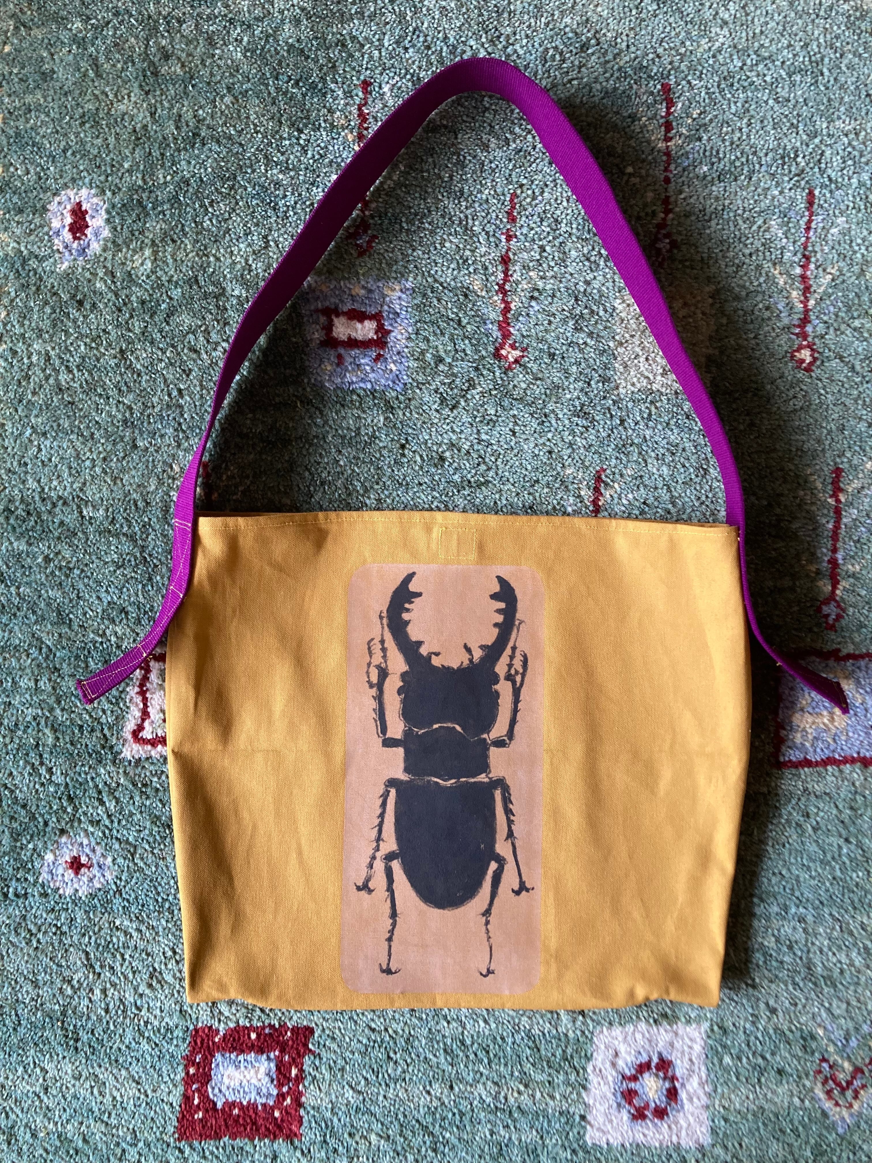 「おでかけのとき、つねにデカめの昆虫図鑑を持ち歩く息子にバッグを作ってもらえない?」という依頼を受けて作りました。